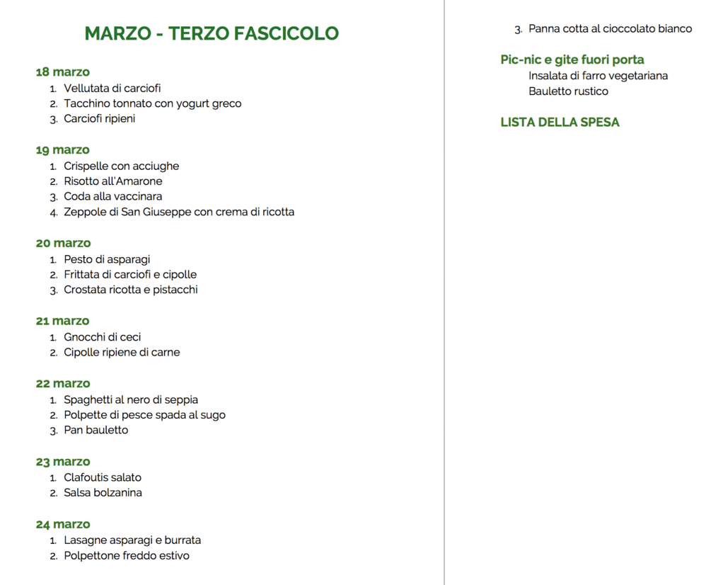 Vuoi conoscere tutte le ricette e i menu che ti aspettano? Clicca sulle frecce a destra sulla copertina e scopri l'indice dei 4 fascicoli.